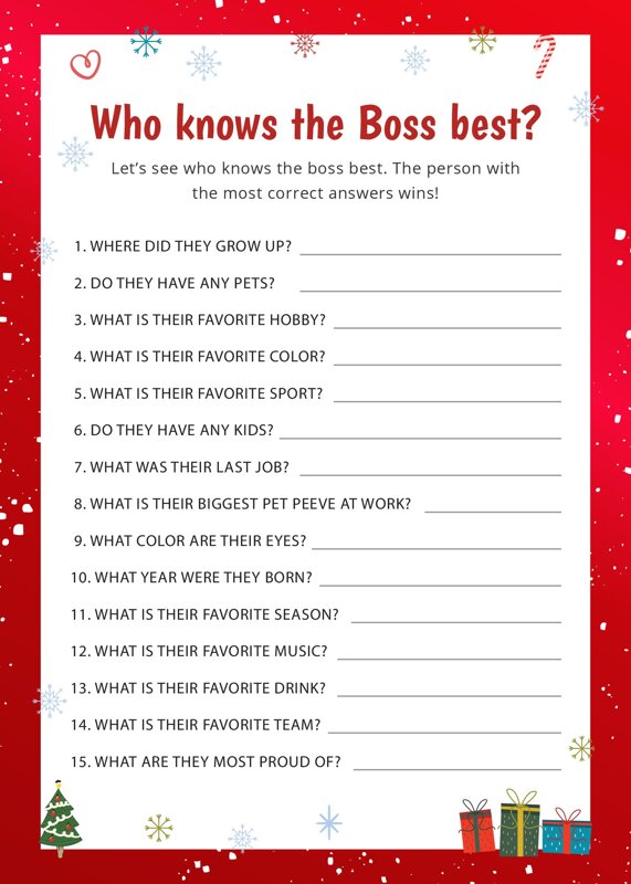 The "Who Knows the Boss Best" Christmas game adds a fun twist to office holiday festivities, offering a fun and lighthearted way for colleagues to test their knowledge about the boss.