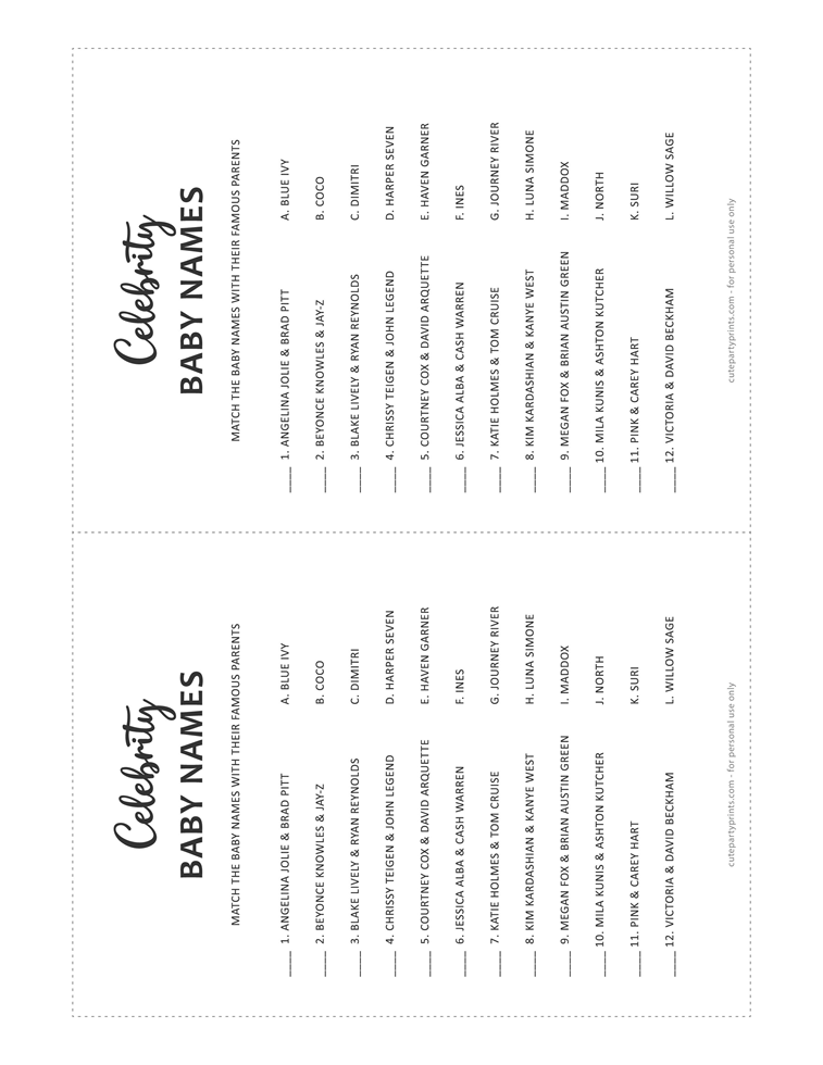 Download printable celebrity baby name listing. For more similar baby shower templates, browse our free printable library. Simply download and print them at home or office.